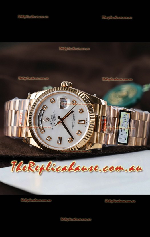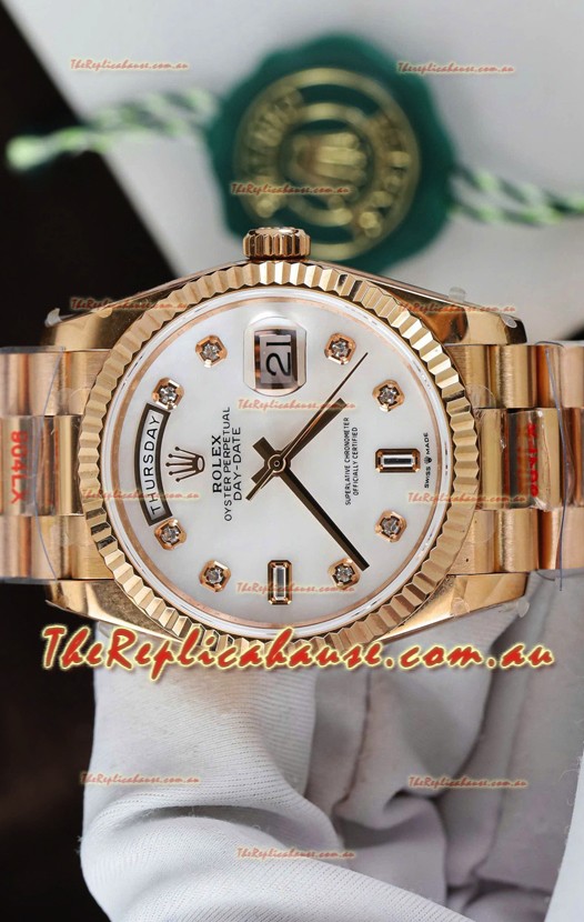 You're reviewing: Rolex Day Date Presidential 18K Rose Gold Watch 40MM - Pearl Dial 1:1 Mirror Quality