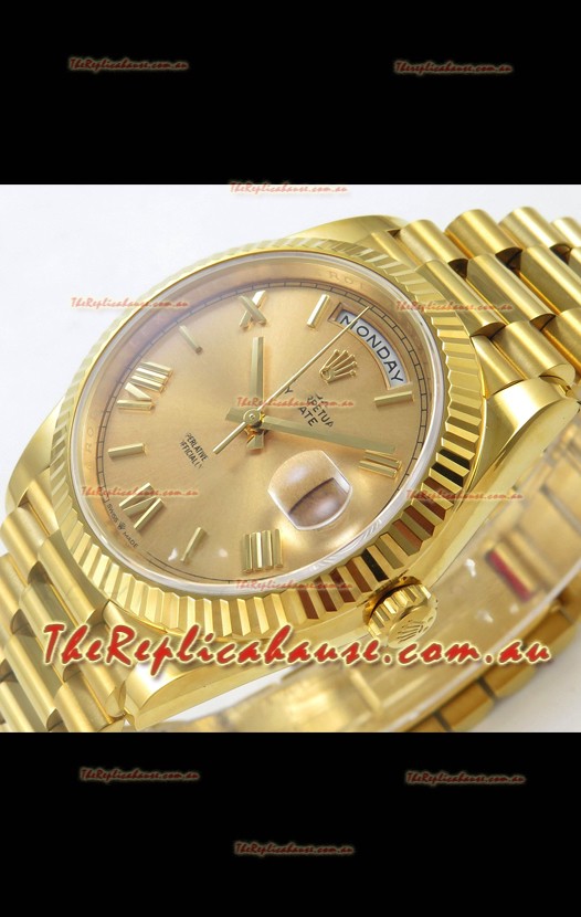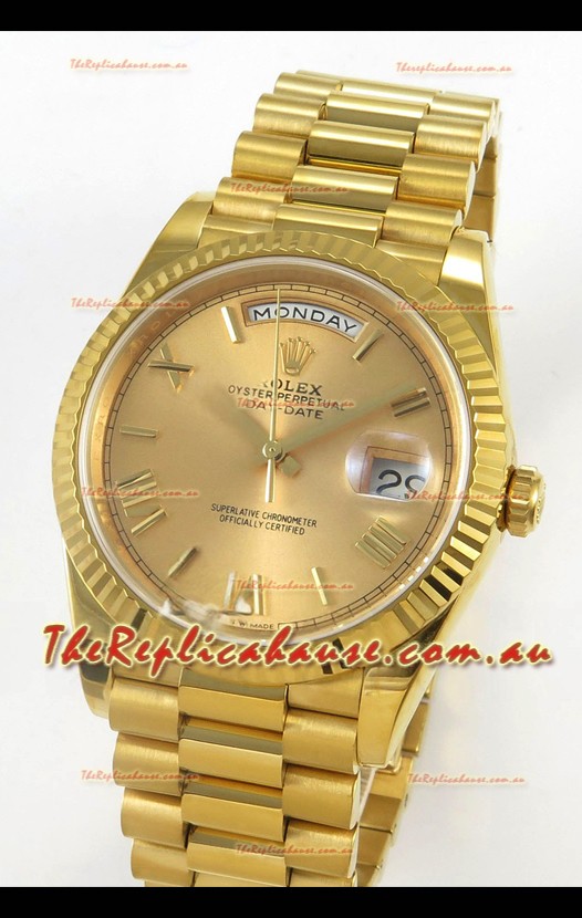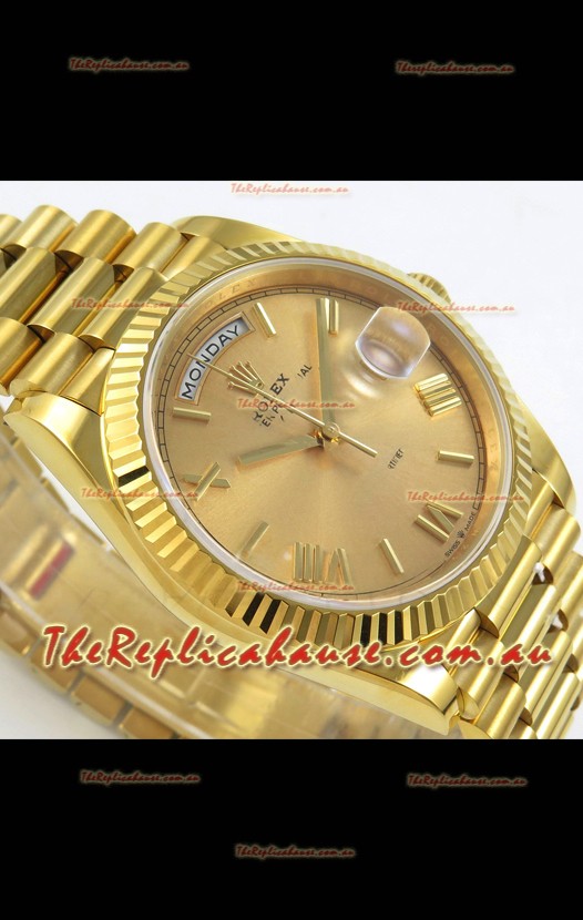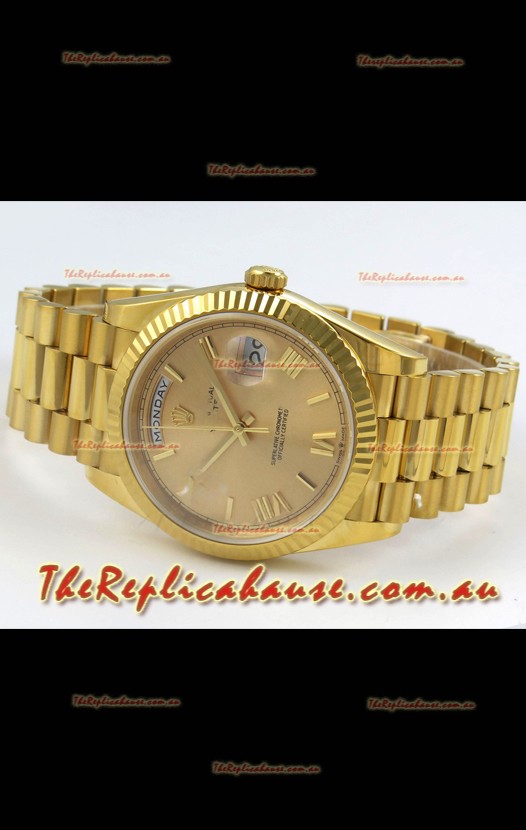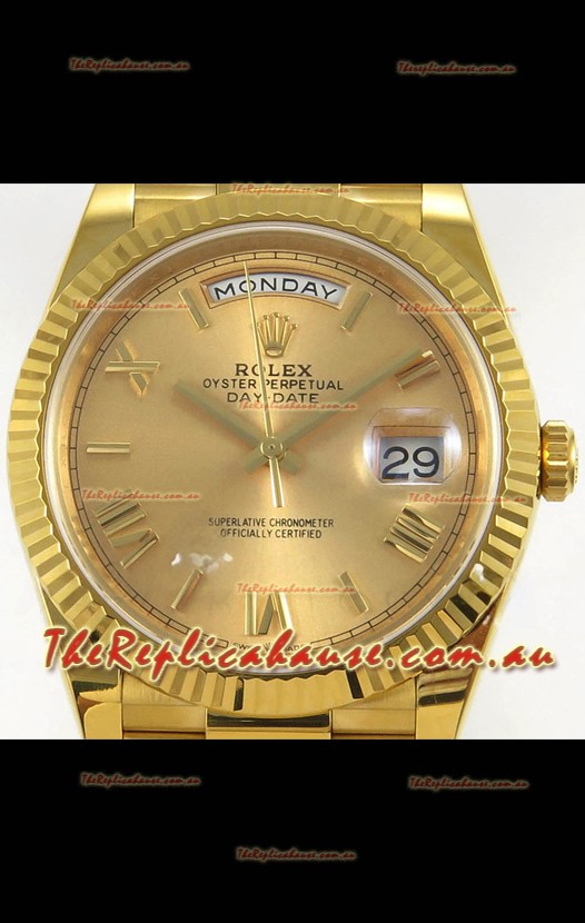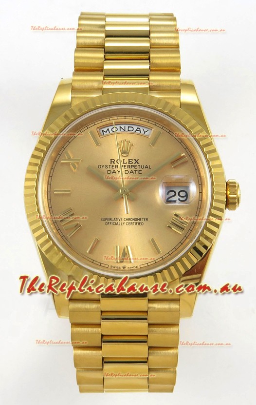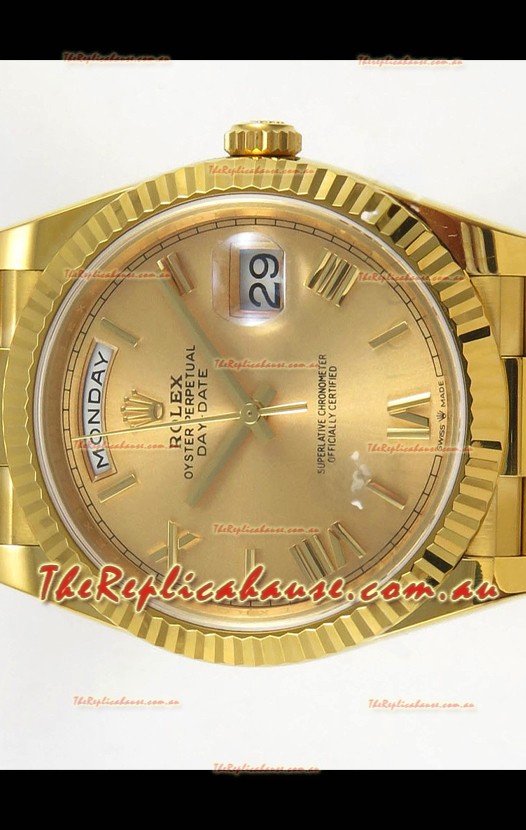 Rolex Day Date Super Clone Gold Roman Dial 40MM 220 Grams Swiss Replica watch