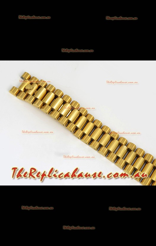 18K Yellow Gold Plating on 904L Stainless Steel New Design President Strap with Folding Clasps complete with Rolex Markings and Engravings