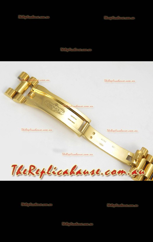 18K Yellow Gold Plating on 904L Stainless Steel New Design President Strap with Folding Clasps complete with Rolex Markings and Engravings