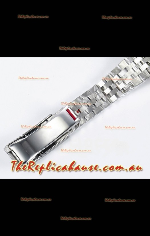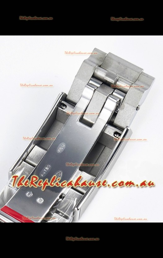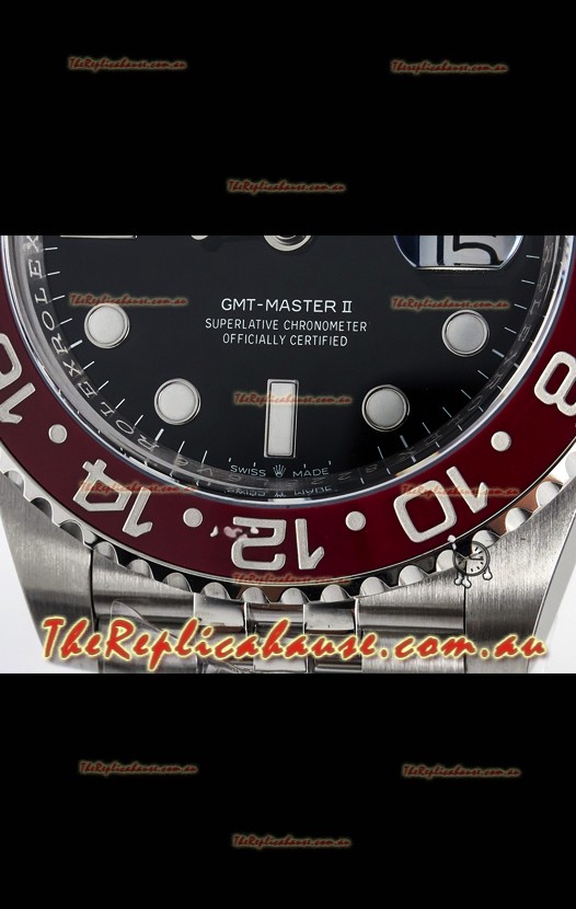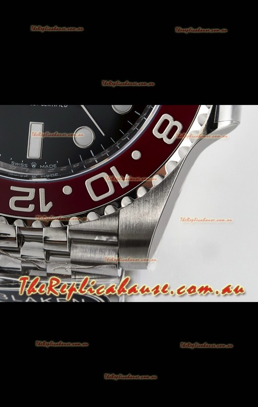 904L Stainless Steel Case as per the Orginal with Metallic Black/Red Ceramic Inserts.
