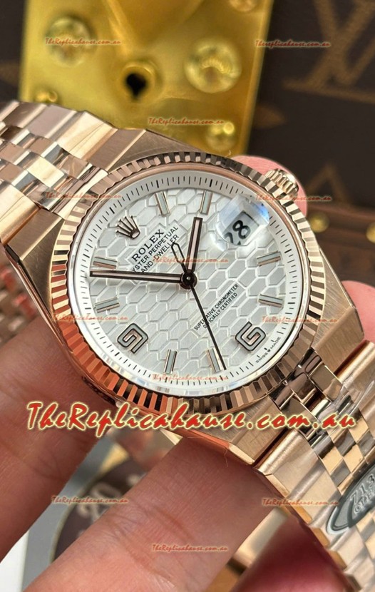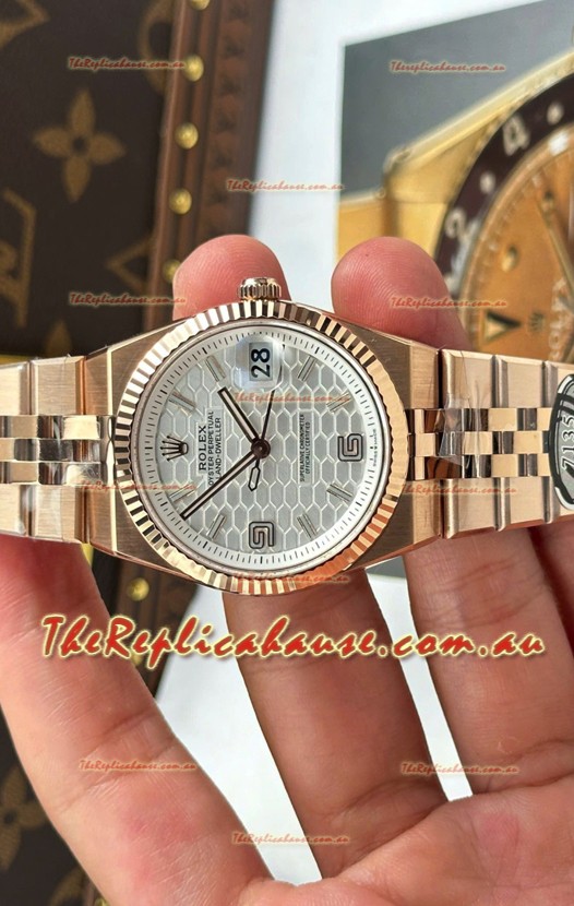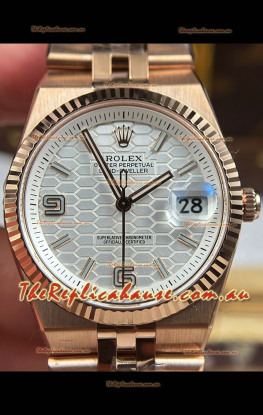 Rolex Land-Dweller 127235 Steel Honeycomb Rose Gold 36MM Swiss Replica Watch