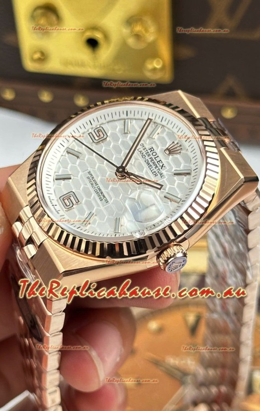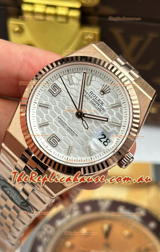 You're reviewing: Rolex Land-Dweller 127235 Steel Honeycomb Rose Gold 36MM Swiss Replica Watch
