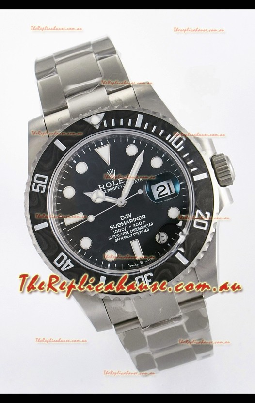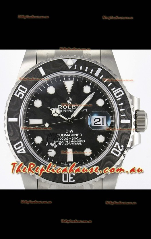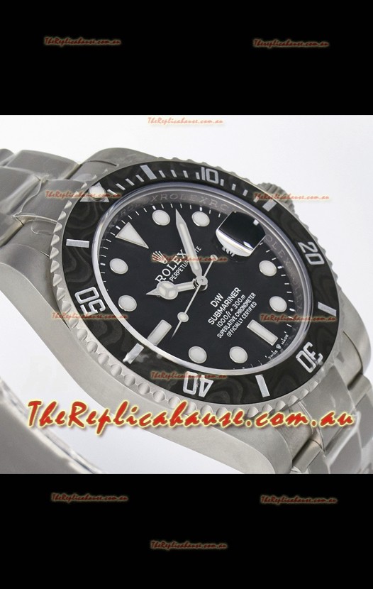 Rolex Submariner DiW Sandblasted Steel Casing Carbon Fiber Bezel Watch Black Dial