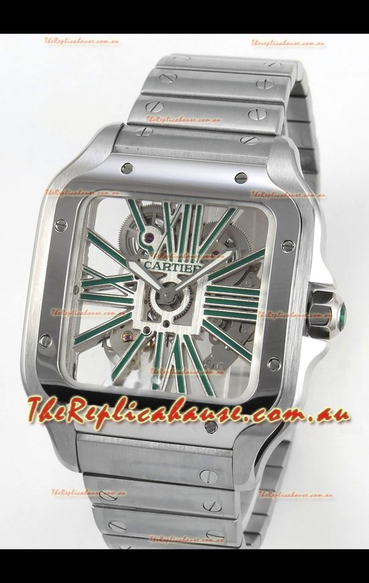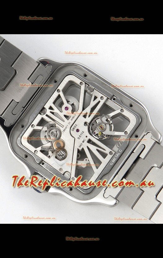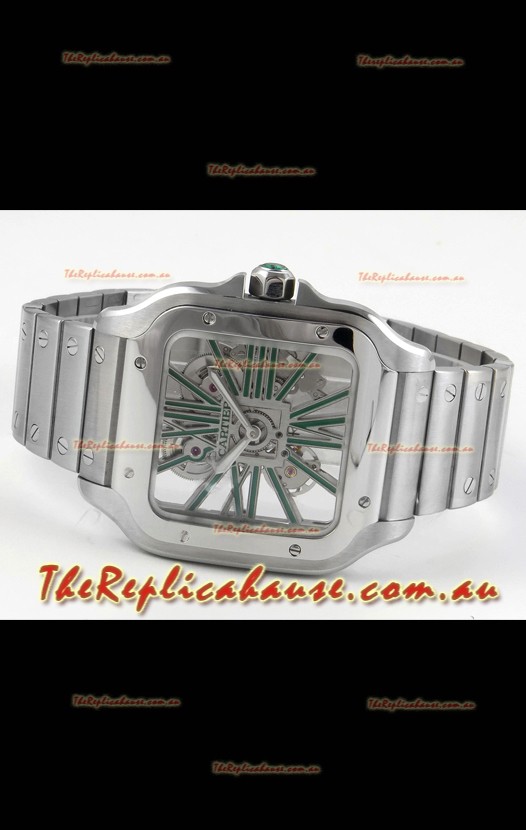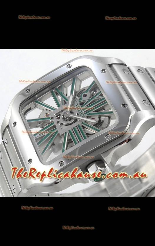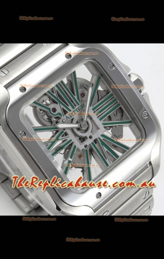 Santos De Cartier Super Clone Watch in Skeleton Dial Stainless Steel Case