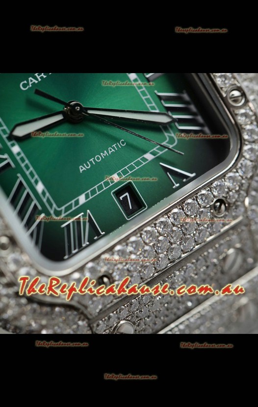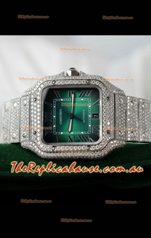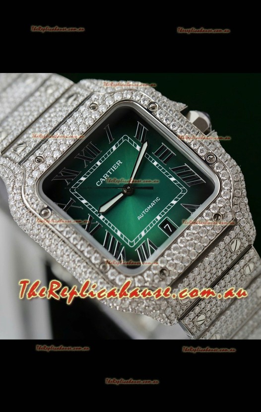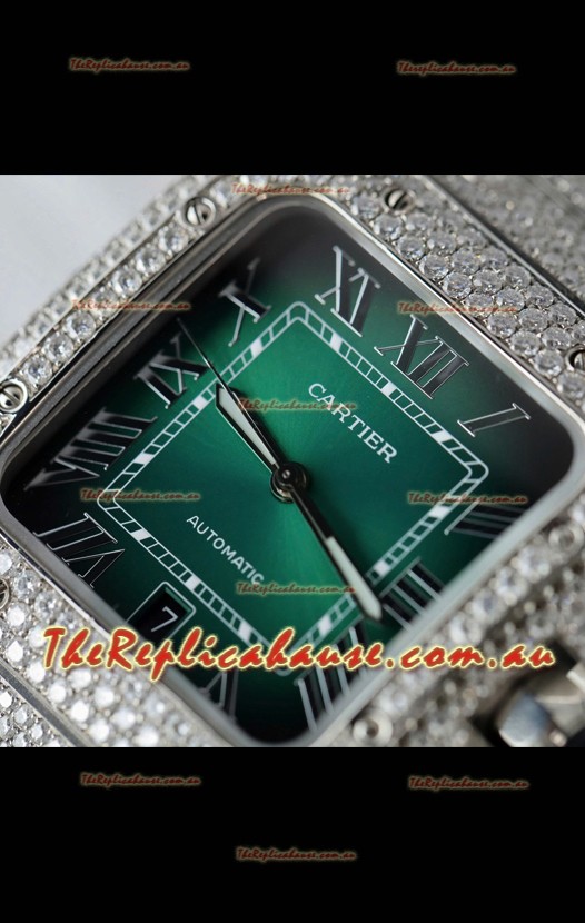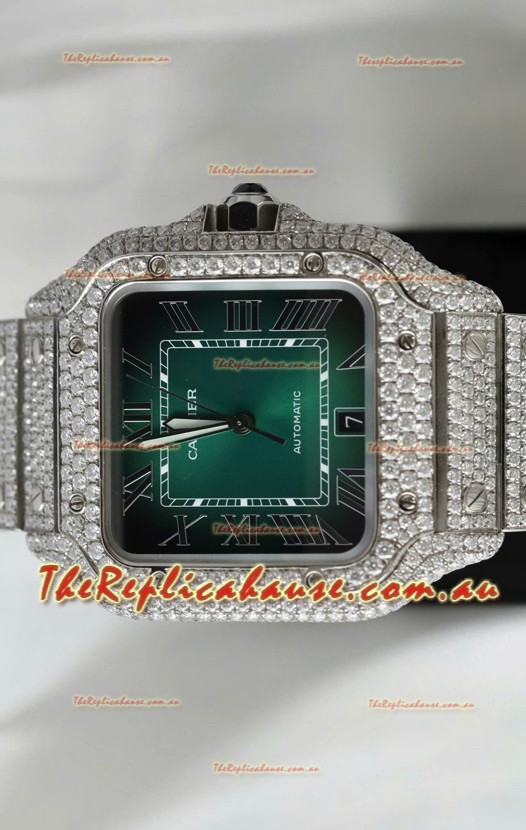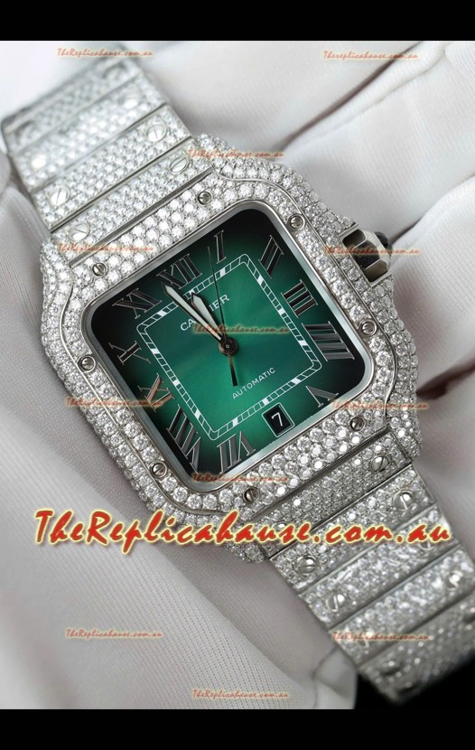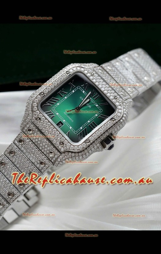 You're reviewing: Santos De Cartier Watch in Green Dial MOSSANITES Paved Edition Swiss Replica Watch