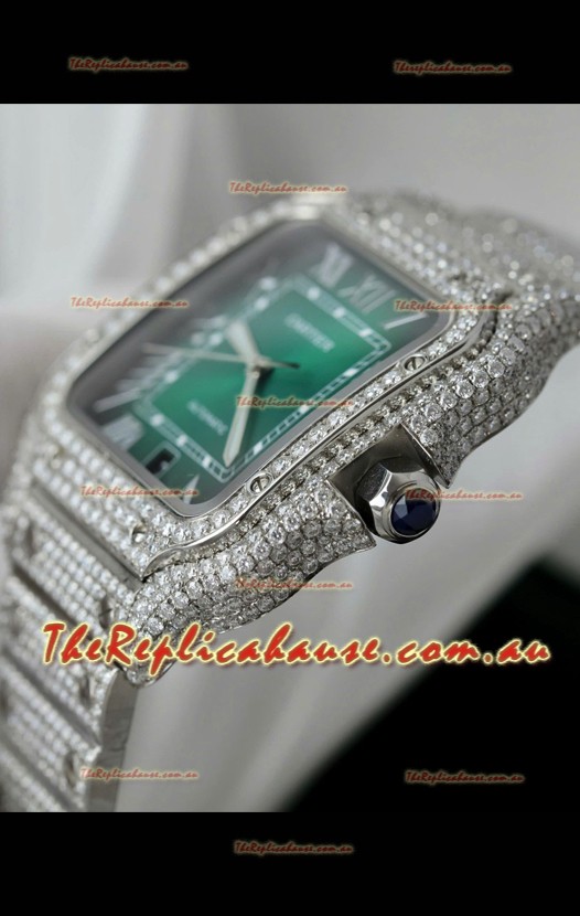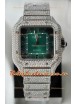 Santos De Cartier Watch in Green Dial MOSSANITES Paved Edition Swiss Replica Watch
