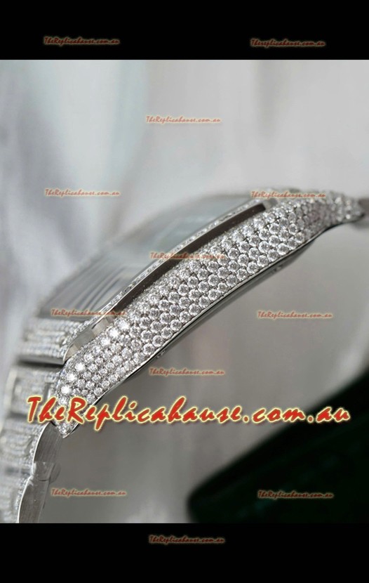 Mossanite Paved 904L Stainless Steel Strap with Cartier Deployant Buckle complete with Cartier Markings and Engravings