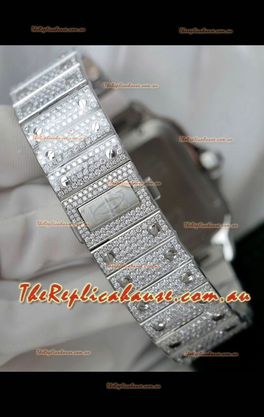 Santos De Cartier Watch in White Dial MOSSANITES Paved Edition Swiss Replica Watch