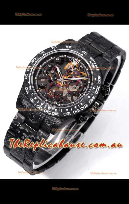 Rolex Daytona Blaken Black Carbon 1:1 Swiss Mirror Replica Skeleton Dial Cal.4130 Movement