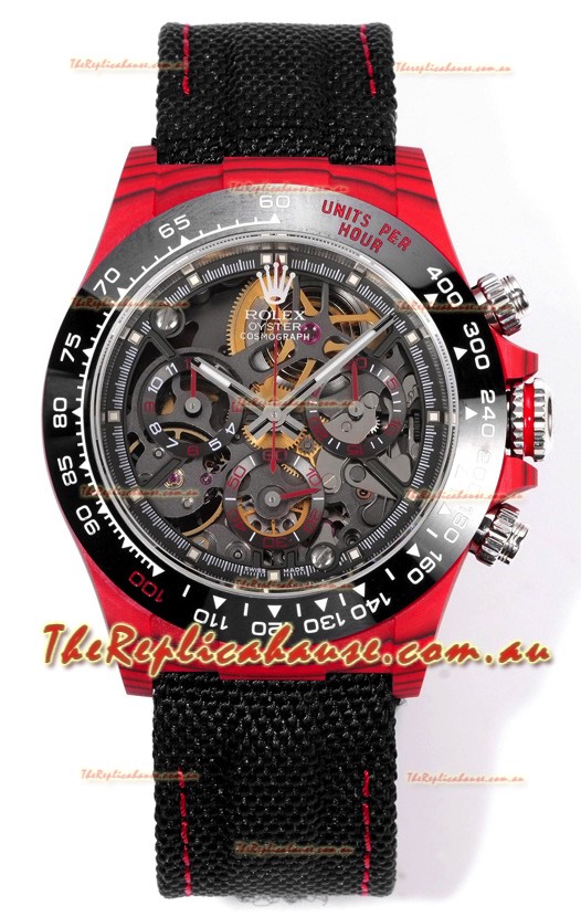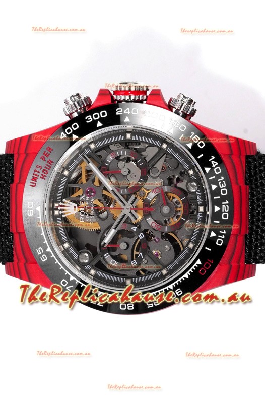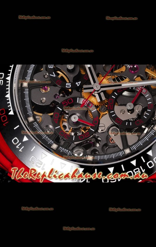 Rolex Daytona Blaken Red Carbon 1:1 Swiss Mirror Replica Skeleton Dial Cal.4130 Movement