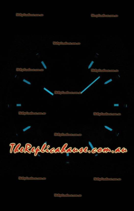 Genuine Anti Reflective Scratch Proof Sapphire Crystal with Semi-Invisible crown etched at 6:00 position.