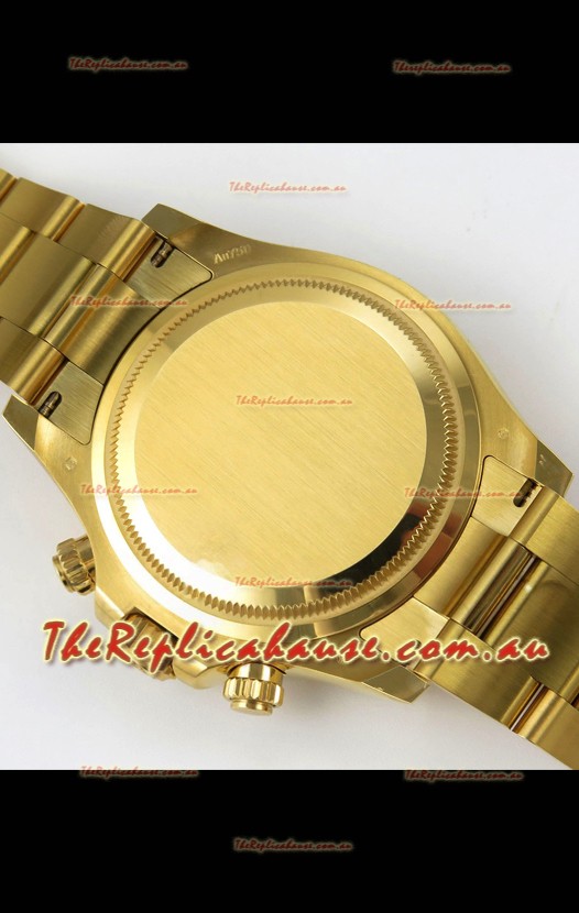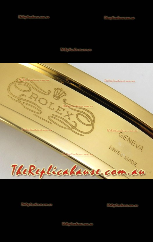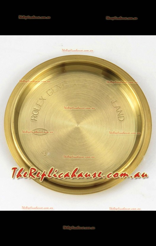 Yellow Gold Plating on 904 Solid Stainless Case with Rolex Markings and Engravings like the Authentic.