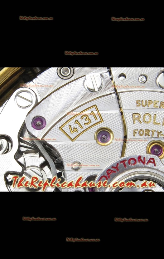 Genuine Cal.4131 Movement built from Scratch with no modifications, Platinum Plating on Rotors and Plates as per the original. The Same movement you find in Rolex Daytona Watches