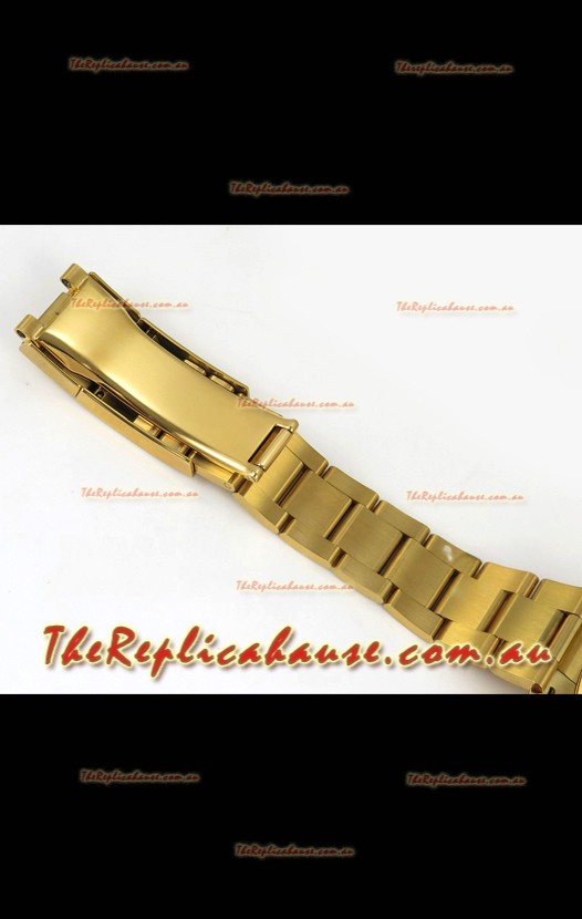 18K Yellow Gold Plating on 904L Stainless Steel Strap Revised Clasps release as per the Genuine with very Smooth Locking and detach lock systems as per the genuine